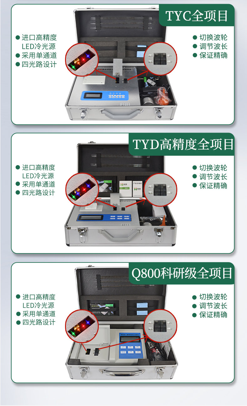 配套齊全:該儀器集藥、器、儀為一體,攜帶方便,相當于一個小型實驗室。適于農業服務部門或農資經銷商、肥料廠商測土施肥和鑒別肥料真假。
